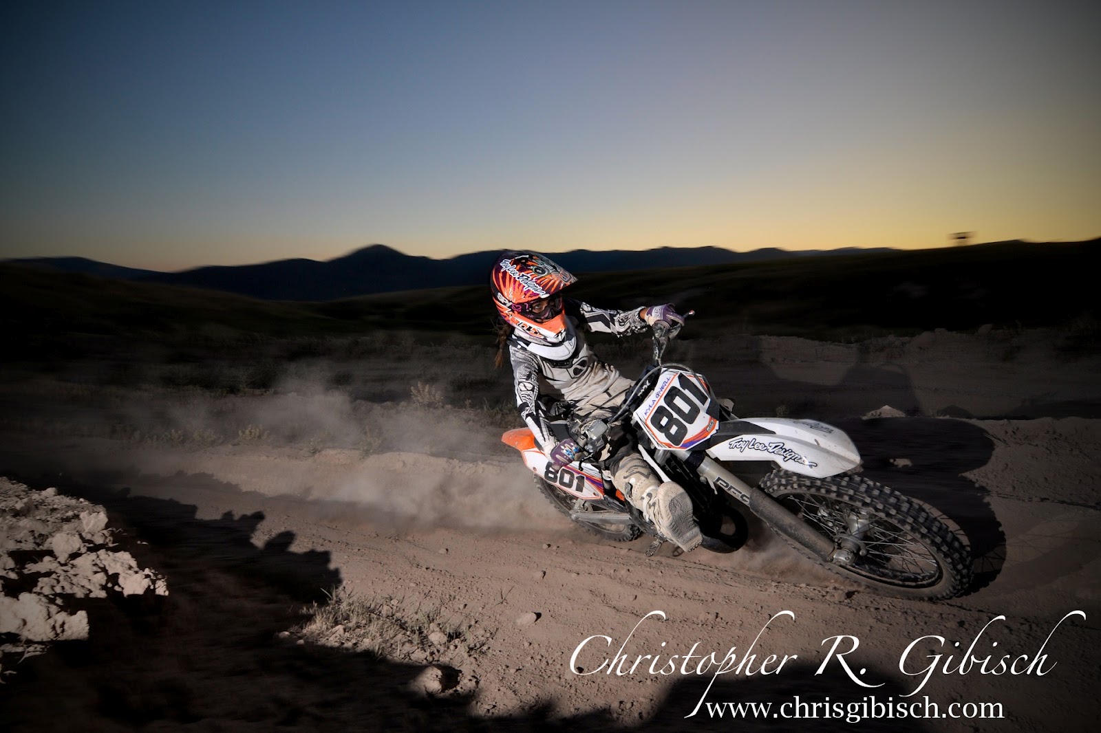 The other night I finally got the opportunity to ride a track. Being the rookie that I am, it was a great time learning my bike and getting advice from the experienced riders. After a few hours of working the corners and learning to jump properly, I called it quits and pulled out my camera. There were two younger girls riding, both of whom race, who were willing to let me take some pics. As the sun set, I positioned the speed lights to illuminate the riders while maintaining an optimal exposure for the ambient light. It was my first try and I was happy with the results. I'm looking forward to trying it again.